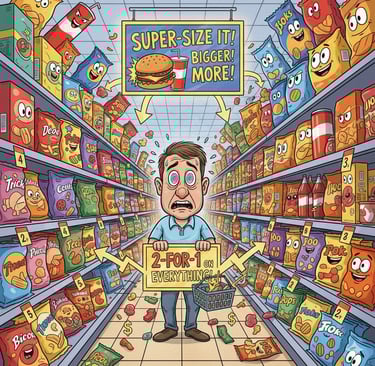 Disponibilidad y Entorno Obesogénico: La presencia de comida (especialmente productos superfluos y ultraprocesados) en casa o el entorno de trabajo es un detonante determinante. Los entornos obesogénicos (restaurantes, supermercados) incitan a consumir opciones menos saludables o a agrandar porciones (ej. "agrandar el combo por equis plata" o promociones 2x1).