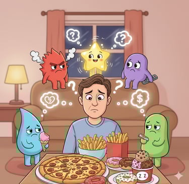 Hambre Emocional (Hambre del Corazón): Es el impulso de usar la comida para regular o calmar emociones negativas como el miedo, la rabia, la tristeza, la ansiedad, o el aburrimiento.