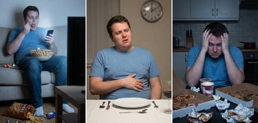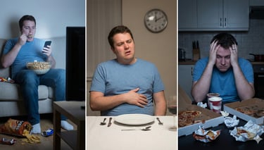 Sobreingesta: comes más de lo que necesitas y luego te sientes incómodo o con culpa.